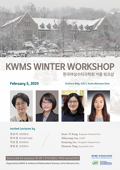 Çѱ¹¿©¼º¼ö¸®°úÇÐȸÀÇ °Ü¿ï ¿öÅ©¼óÀº ºñ Á¤±âÇà»ç·Î KWMS ÀÓ¿ø ¿öÅ©¼óÀ» °âÇϸç Çѱ¹¿©¼º¼ö¸®°úÇÐȸ °í¹®µé°ú ¿©¼º ¼öÇÐ°è ¸®´õµé°ú ÇÔ²² ±¹³» ¼öÇаèÀÇ Çö¾ÈÀ» ³íÇÏ°í ¿©¼º ¼öÇÐÀÚ¸¦ À§ÇÑ ¹æ¾È ¹× ¾ÆÀ̵ð¾î¸¦ ±³È¯ÇÏ´Â ÀÚ¸®ÀÔ´Ï´Ù. À̸¦ ÅëÇØ ¼öÇко߿¡¼ ¿©¼ºÀÇ ¿ªÇÒ°ú ±â¿©¸¦ ´õ¿í ³ôÀ̰í, Çѱ¹¿©¼º¼ö¸®°úÇÐȸ°¡ ¼öÇа迡 ´õ¿í ±â¿©ÇÒ ¼ö ÀÖµµ·Ï ÇÔÀ» ¸ñÇ¥·Î Çϰí ÀÖ½À´Ï´Ù.